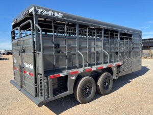 #28646 6.5x20x7 tall. 2026 Swift Built 3/4 Top Stock Trailer. Full Escape Door, Stud Gate, Center Gate with Sort Gate, Lifetime Rubber Floor, Full Swing Rear Door with Slider, Easy Lock Coupler, 7k Axles, Spare Tire..