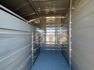 #11549 8 x 21 x 7'6 Tall. 2026 Bloomer 4 Horse Smart Tack Trainer Deluxe. Dressing Room with Boot Bench, Shelves, Bridle Hooks, Side Rear Broom Closet with Extra Hooks and Shelf, Side Tack with 4 Saddle Racks, Swing Out Blanket Bars, Bridle Hooks, Lined and Insulated Horse Area, Mangers, Escape Door, Stud Divider, Rear Ramp, Solar Panel, Hydraulic Jack, Hay Rack, Spare Tire...
