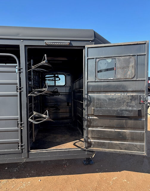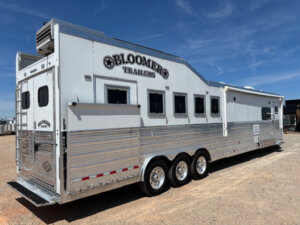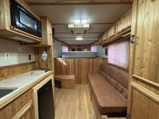 #51329 8x39x7.5 Tall. 2005 Hart 4 Horse 17' Outlaw Conversion with Slide Out, 4' Mid Tack, Couch in Slide, Full Kitchen, Large Bathroom, Hay Pod, DIESEL GENERATOR (3008 Hours), Mid Tack with Boot Bench, Saddle Racks, Swing Out Blanket Bars, Rear Storage Closet, Rear Ramp, Equiflex Floor, Mangers, Drop Windows on Both Sides, Insulated Roof, Rubber Lined Horse Area, Stud Divider, Automatic Waterers in Each Stall, Roof Vents, Enclosed Nose, Elec/Hydraulic Brakes, Air Ride, Dual Hydraulic Jacks, Spare Tire..