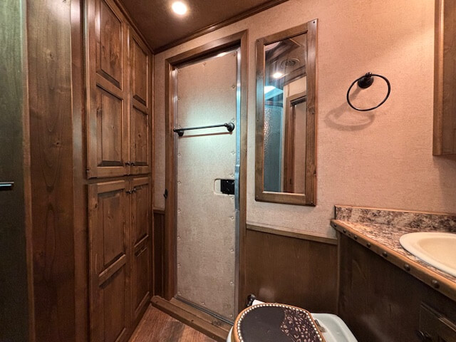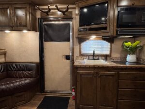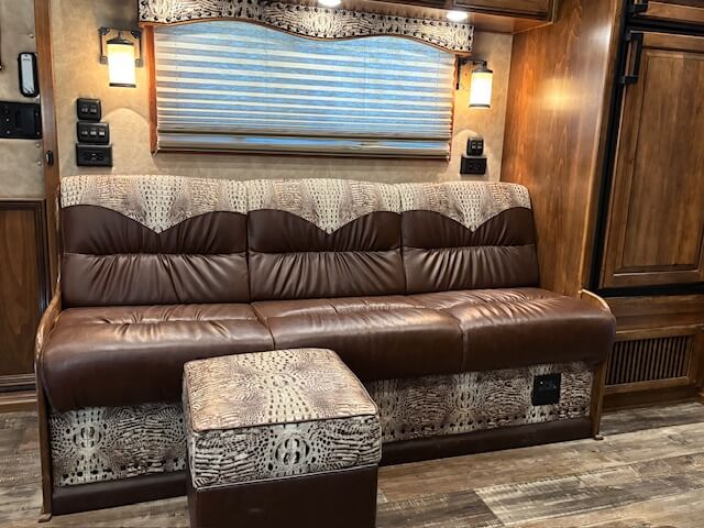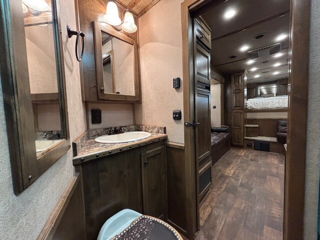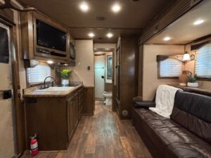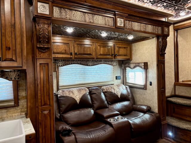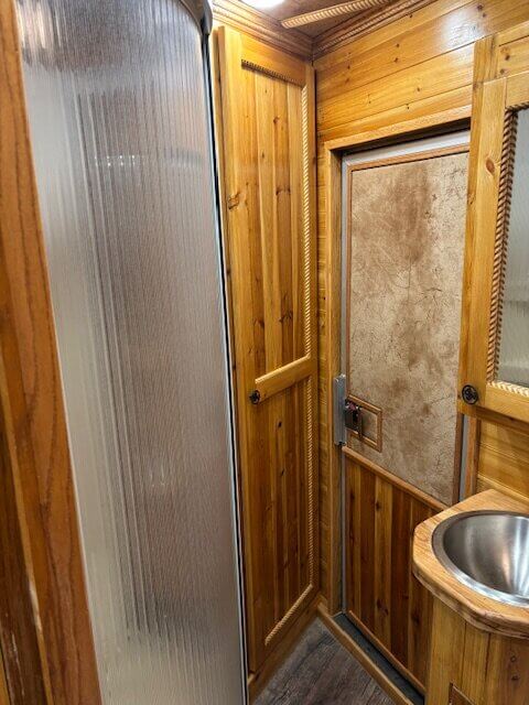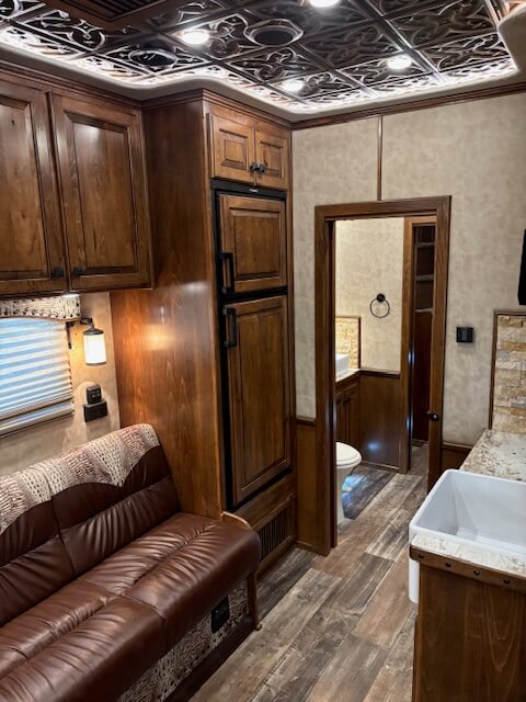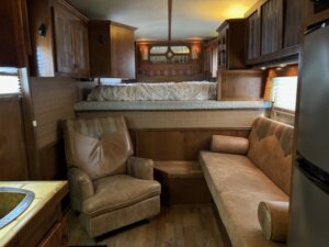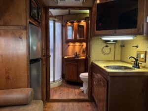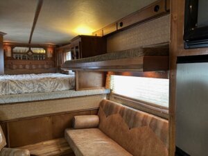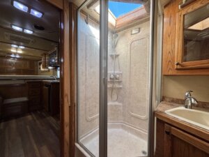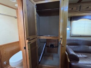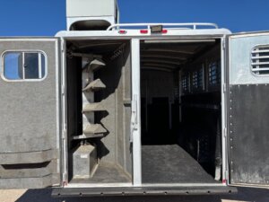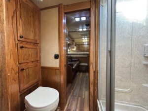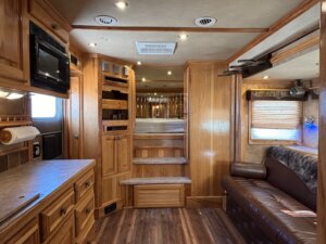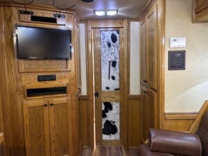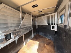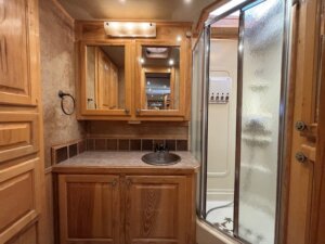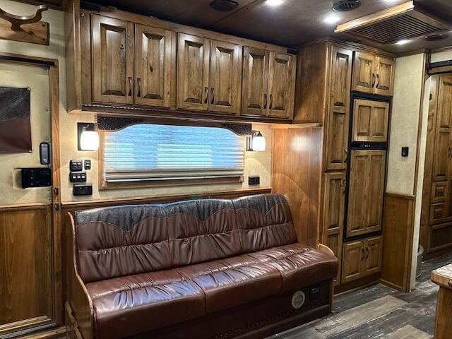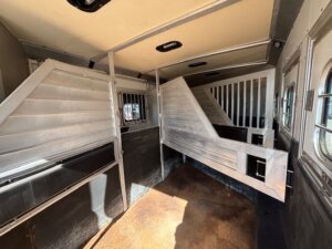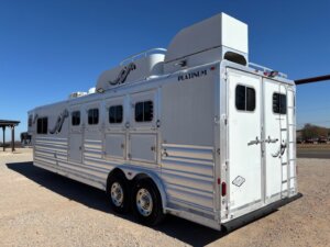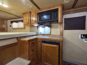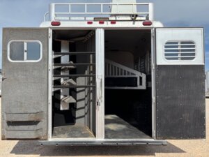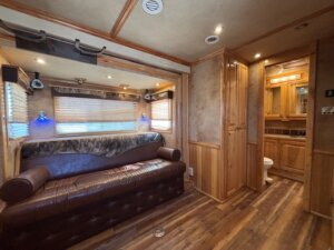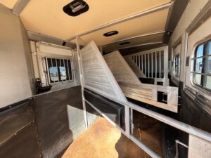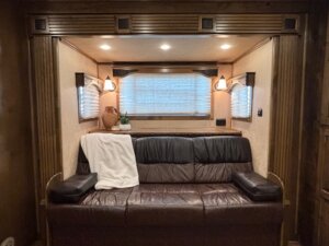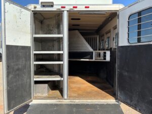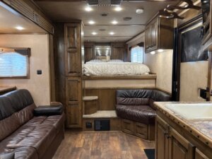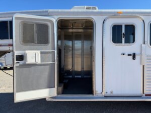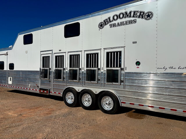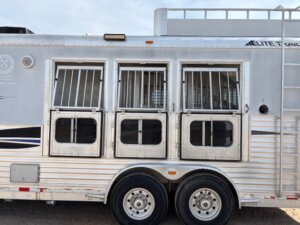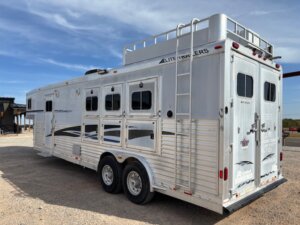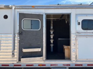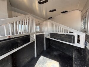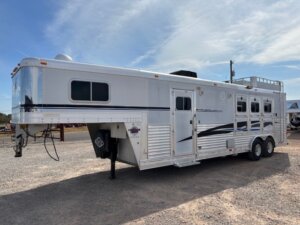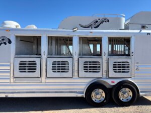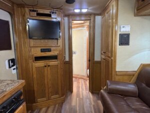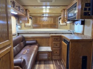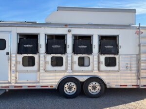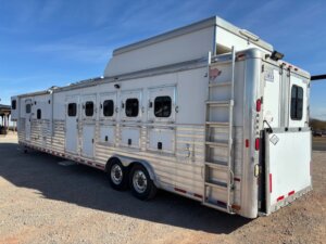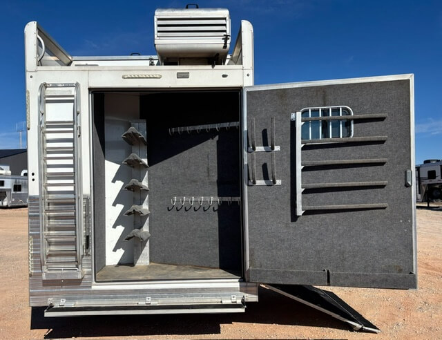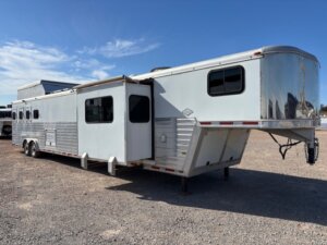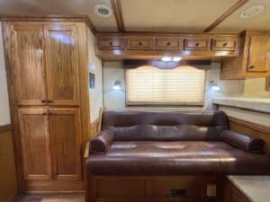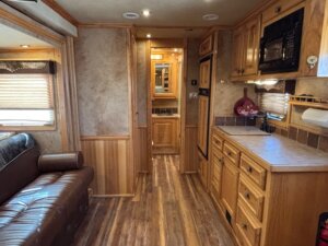 #51329 8x39x7.5 Tall. 2005 Hart 4 Horse 17' Outlaw Conversion with Slide Out, 4' Mid Tack, Couch in Slide, Full Kitchen, Large Bathroom, Hay Pod, DIESEL GENERATOR (3008 Hours), Mid Tack with Boot Bench, Saddle Racks, Swing Out Blanket Bars, Rear Storage Closet, Rear Ramp, Equiflex Floor, Mangers, Drop Windows on Both Sides, Insulated Roof, Rubber Lined Horse Area, Stud Divider, Automatic Waterers in Each Stall, Roof Vents, Enclosed Nose, Elec/Hydraulic Brakes, Air Ride, Dual Hydraulic Jacks, Spare Tire..