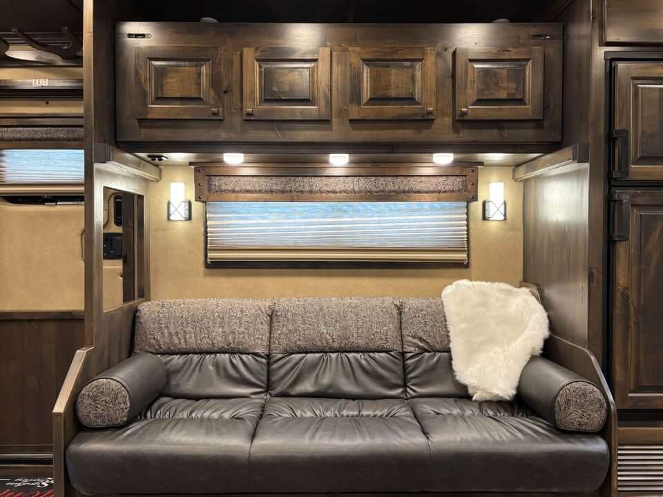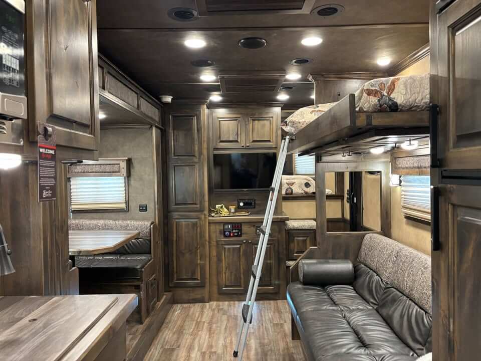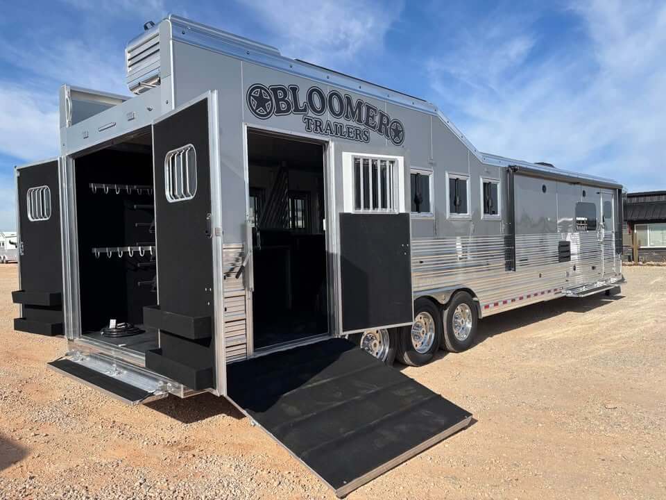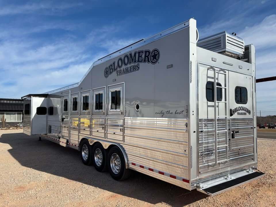 #594. 8x39x7’6 Tall. 2026 Bloomer 5 Horse Side Load 17’ Signature Quarters Interior. Dinette in Slide, Fold Out Couch, Fold Down Bunk Overhead, Entertainment Center, Kitchen with Large Sink, Full Bathroom with Extra Storage, Exterior Hamper Clean-out, Walk Thru Door, Integrated Hay Pod, Generator, Drop Windows on Both Sides, Mangers, Stud Divider, Side Ramp, Full Back Tack, Two AC Units, 3-8k Axles, 19.5 Tires, Alcoa Wheels, Elec/Hydraulic Disc Brakes, Dual Hydraulic Jacks, Electric Awning…