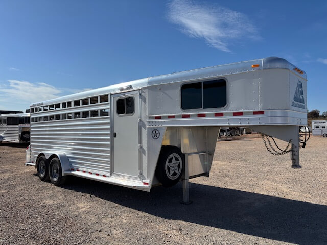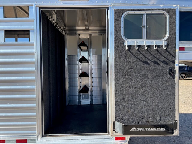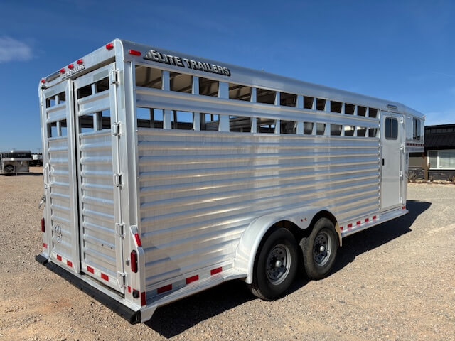#21100 7x20x7 Tall. 2023 Elite Stock Combo. Front Tack/Dressing Room, Saddle Racks, Bridle Hooks, Blanket Bars, Center Gate in Horse Area, Rubber Mats, Full Swing Rear Door with Slider, Spare Tire...