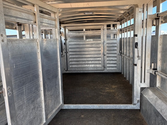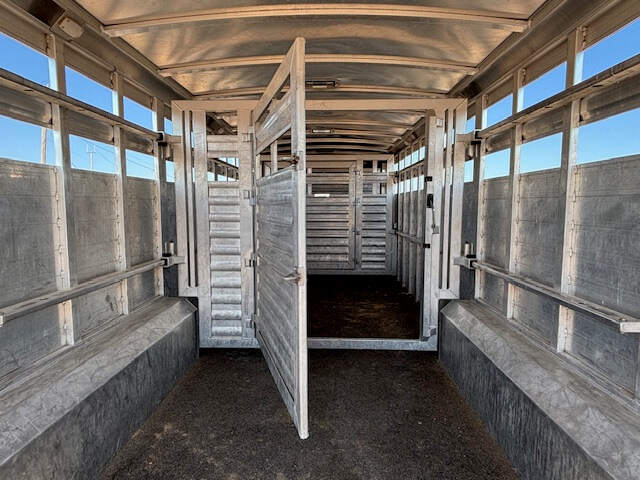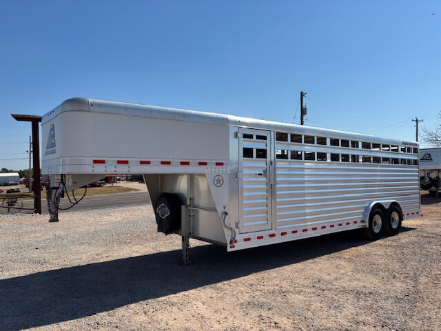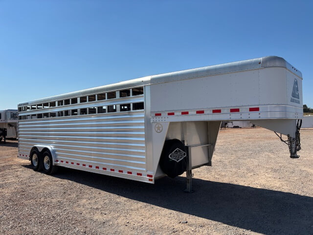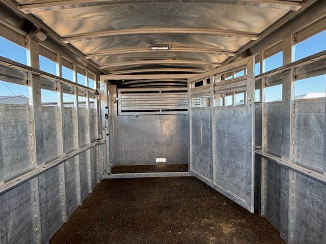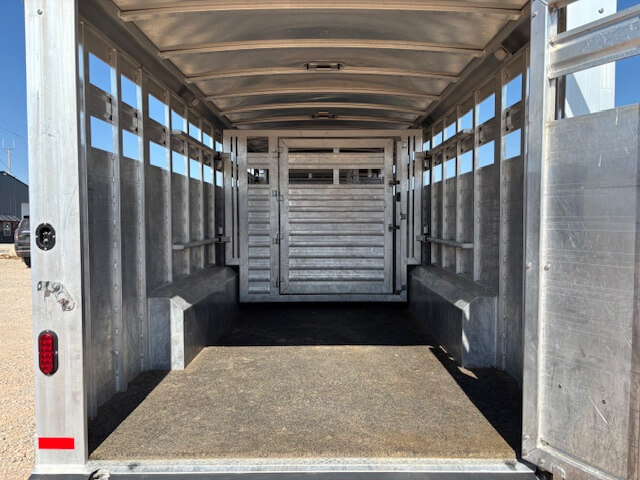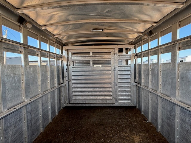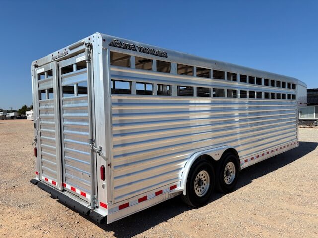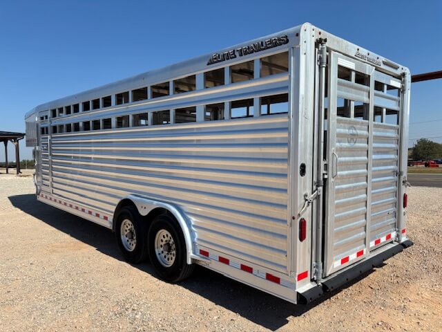 #17822 7x24x7 Tall. 2018 Elite Stock Trailer. Two Adjustable Gates with Sort Gates, WERM Floor, Escape Door, Full Swing Rear Door with Slider, Roof Vents, Spare Tire...