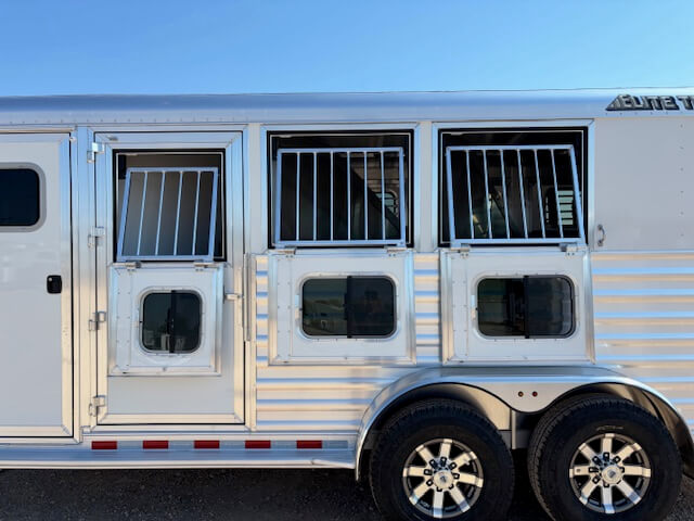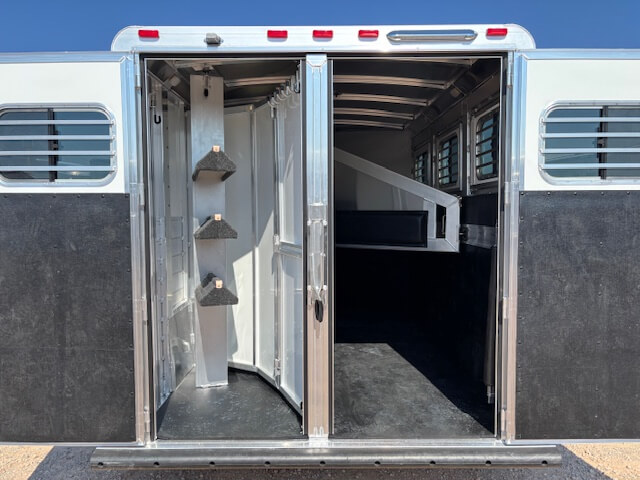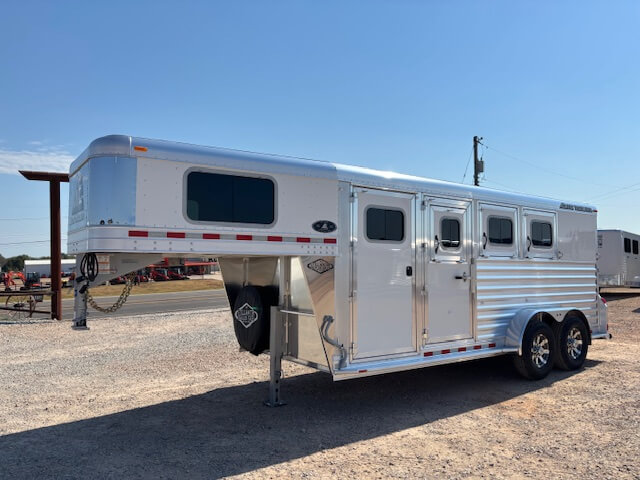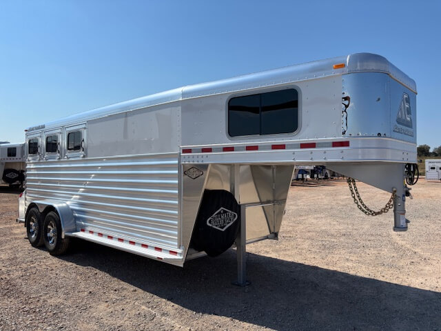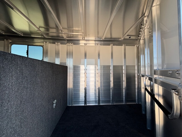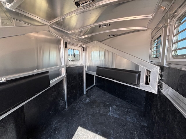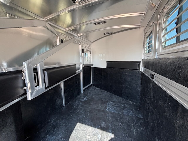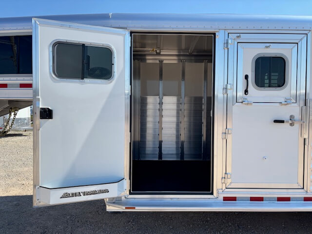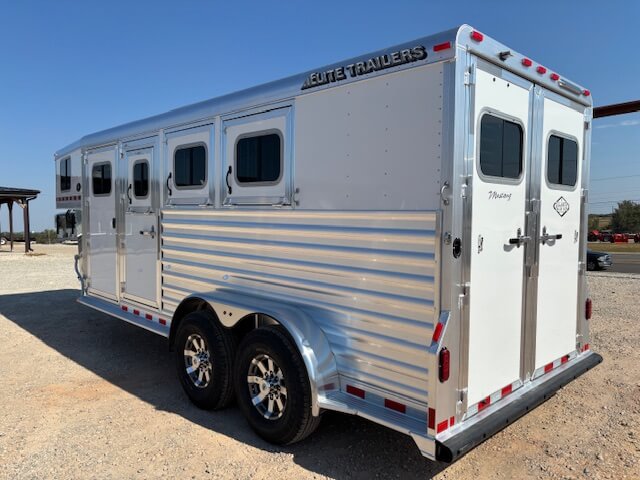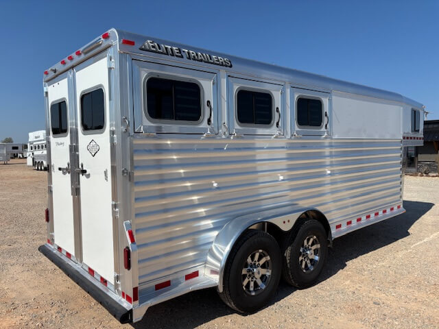 #3434 7X18X7 Tall. 2026 Elite 3 Horse Mustang. Dressing Room with Bridle Hooks & Blanket Bars, Collapsible Rear Tack with Saddle Racks & Bridle Hooks, Rubber Lined Horse Area, Roof Vents, Drops Windows on Both Sides, Spare Tire...