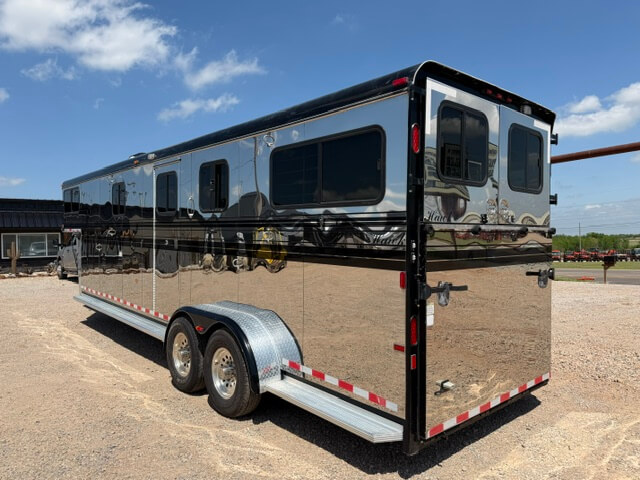 #83113 6.8x32x7' Tall. 2021 Hawk 2+1. Side Ramp, Rear Ramp, Dutch Doors, Walk Thru Door, Horse Area Fans, Roof Vents, Lifetime Rubber Plank Floor, Tack Room, Walk Thru Door, Saddle Racks, Blanket Bars, Bridle Hooks, Boot Bench, AC Unit, Electric Jack, Spare Tire...