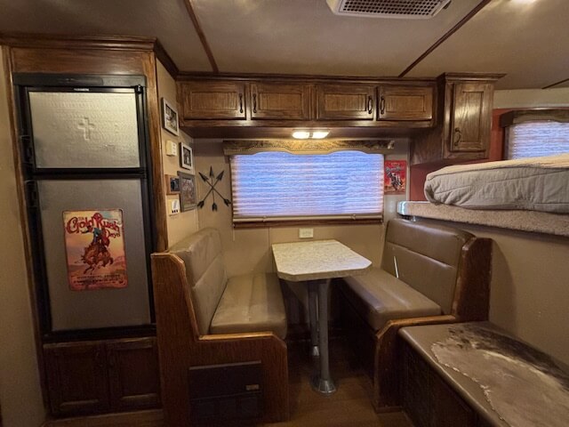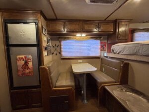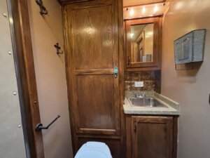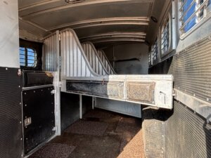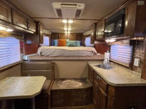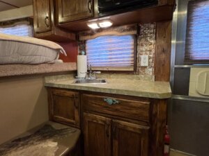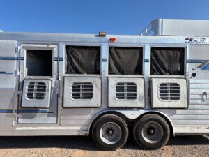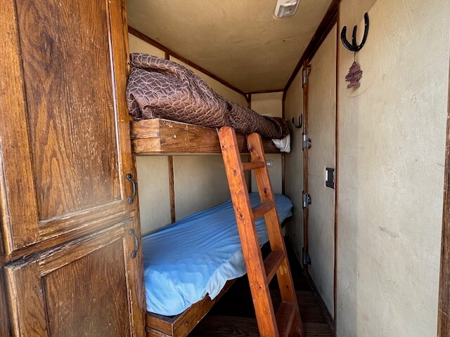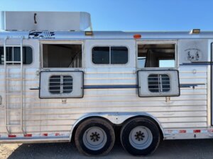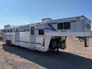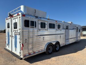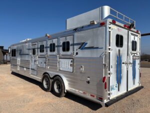 #51329 8x39x7.5 Tall. 2005 Hart 4 Horse 17' Outlaw Conversion with Slide Out, 4' Mid Tack, Couch in Slide, Full Kitchen, Large Bathroom, Hay Pod, DIESEL GENERATOR (3008 Hours), Mid Tack with Boot Bench, Saddle Racks, Swing Out Blanket Bars, Rear Storage Closet, Rear Ramp, Equiflex Floor, Mangers, Drop Windows on Both Sides, Insulated Roof, Rubber Lined Horse Area, Stud Divider, Automatic Waterers in Each Stall, Roof Vents, Enclosed Nose, Elec/Hydraulic Brakes, Air Ride, Dual Hydraulic Jacks, Spare Tire..